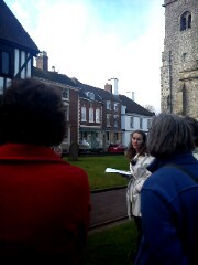The tour paused behind the 16th century Guildhall (above) in view of the church and Brookes's former home and medical practice in Wilmore Street.